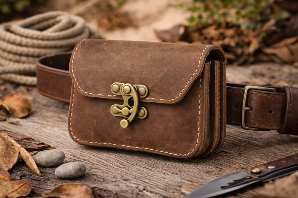Dupla fakkos bőr övtáska, valódi marhabőrből.