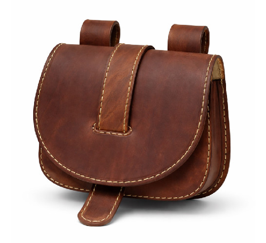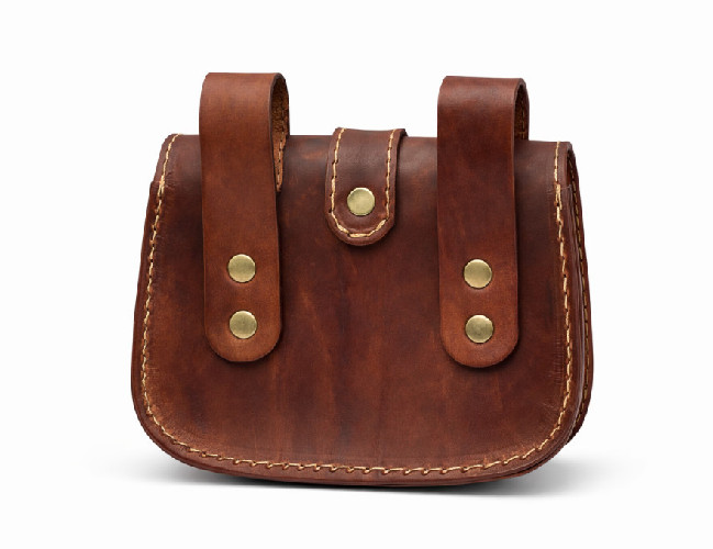 Barna bőrből, fekvő tarsoly alakú övtáska.