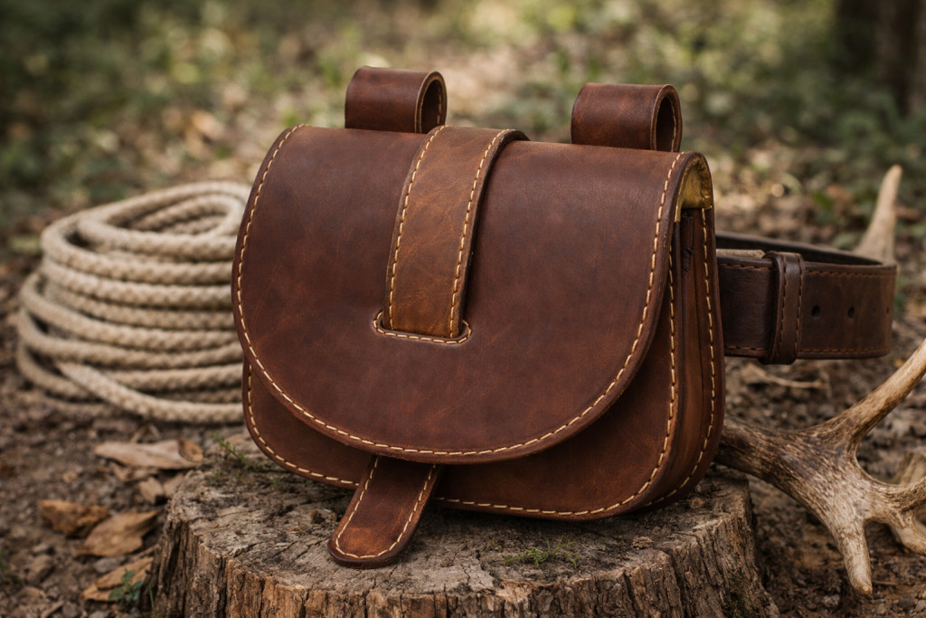 Hátulján 2 db bőr bújtató az övhöz való felfogatáshoz.