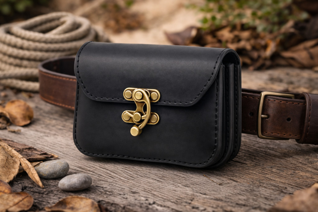 Dupla fakkos bőr övtáska, valódi bőrből.