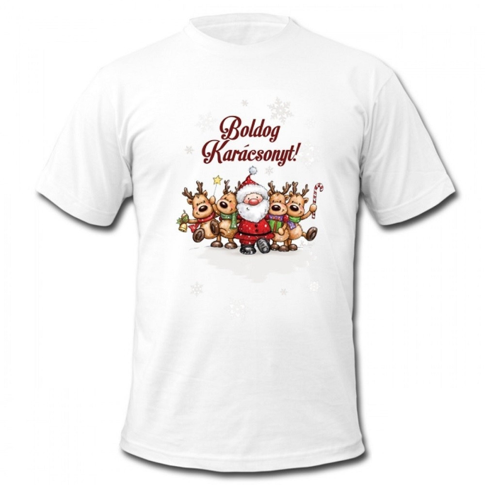 Karácsonyi póló, Mikulás és rénszarvasok, L méret