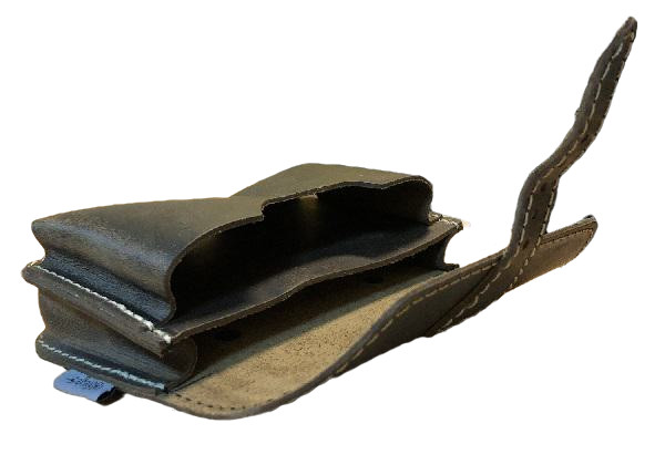 Hátulján 2 db bőr bújtató az övhöz való felfogatáshoz.
