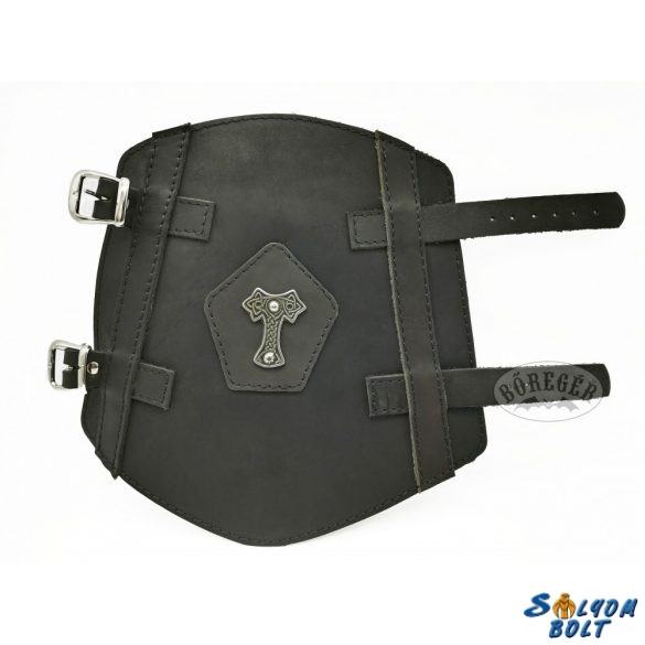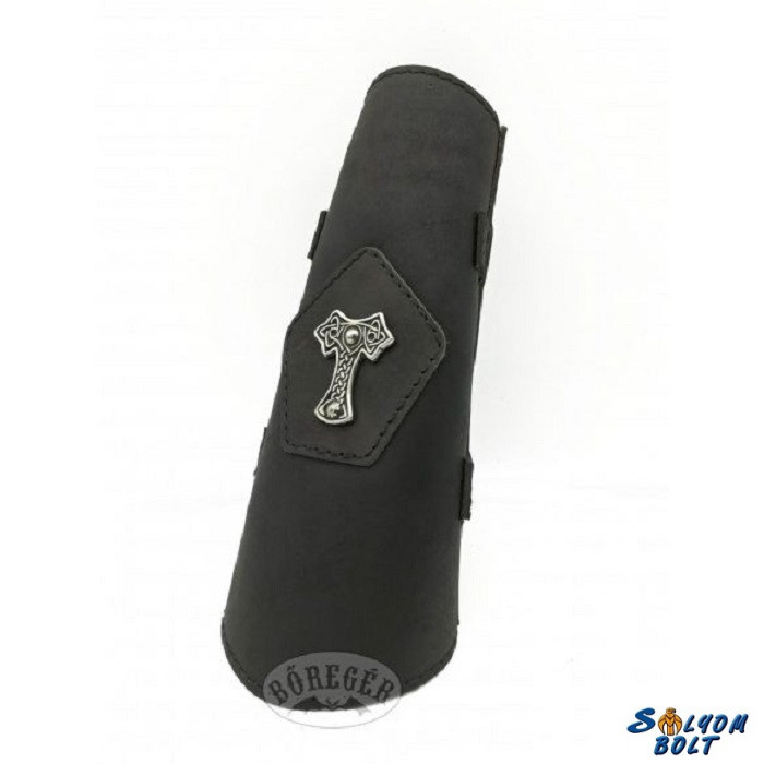 Fekete, valódi bőrből készült alkarvédő, közepén Thor kalapács mintával.