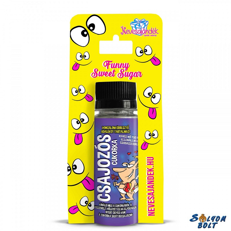 "Vonzalom ébresztő adalékot tartalmaz. Kevés nő tud ellenállni ennek a csodaszernek. Kínáld meg a cukorkából a kiszemelt hölgyet, és ha elfogadja, nyert ügyed van. A cukorka segít becsajozni."