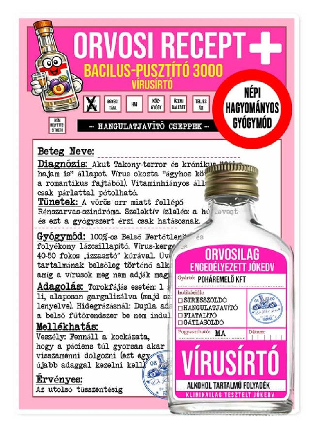 Vicces orvosi recept laposüveggel, humoros ajándék vírusirtónak.
