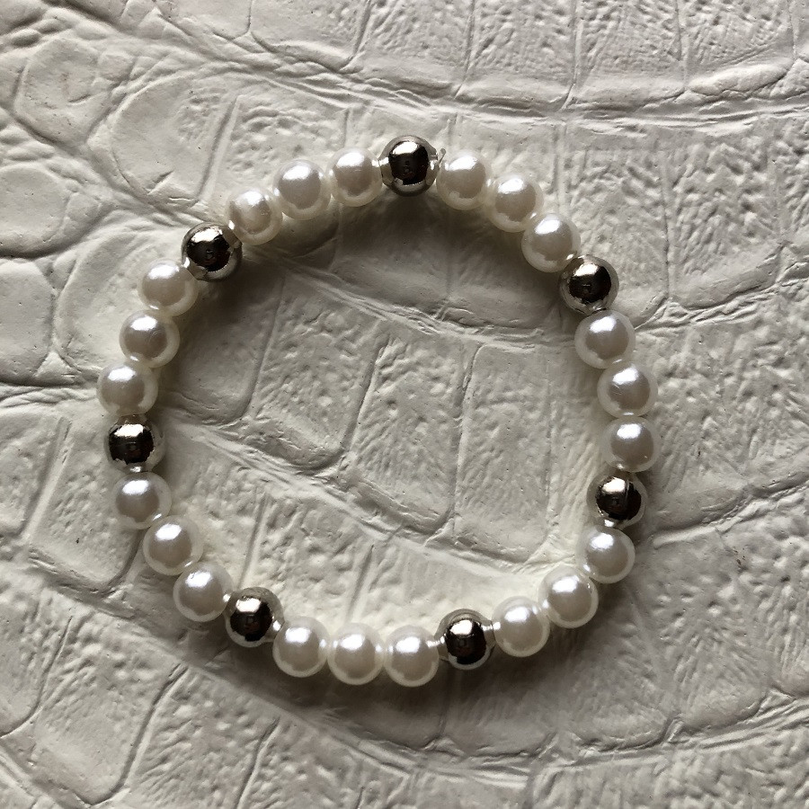 Az Ezüst Csillanás karkötő finom akril gyöngyökből és elegáns fém köztesekből áll, melyek együttesen ragyogó és harmonikus megjelenést biztosítanak. A rugalmas damilnak köszönhetően kényelmes viselet, amely kb. 17 cm-es csuklóméretre ideális.